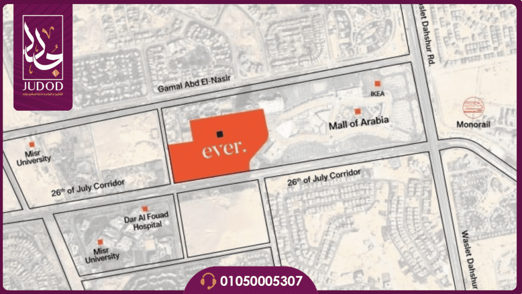 - من أبرز ميزات Compound Ever West 6 October هو موقعه الاستراتيجي الممتاز الذي يتيح سهولة الوصول إليه عبر عدة طرق ومحاور رئيسية، بما في ذلك محور 26 يوليو.