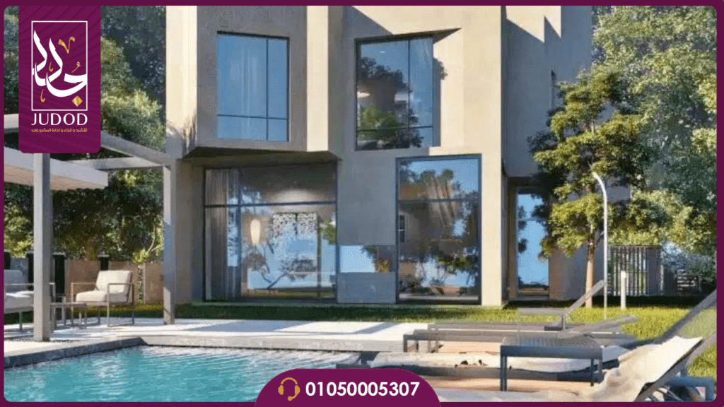 - يحتوي المشروع على حمامات سباحة ومسطحات مائية تبرز جمال التصاميم المعمارية والفنية.