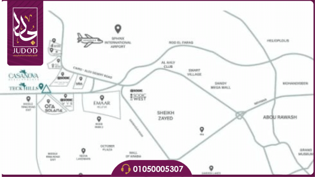 تهتم شركة كازانوفا العقارية بجميع تفاصيل مشاريعها بعناية فائقة، مع التركيز على اختيار موقع كمبوند تيك هيلز Compound Teck Hills في قلب الشيخ زايد كجزء هام من هذه التفاصيل. يهدف الموقع الاستراتيجي القريب من منطقة جاذبية ومحور 26 يوليو إلى توفير بيئة ملائمة للسكان، مما يضمن لهم سهولة الوصول إلى جميع الخدمات والمرافق الضرورية التي يحتاجون إليها.