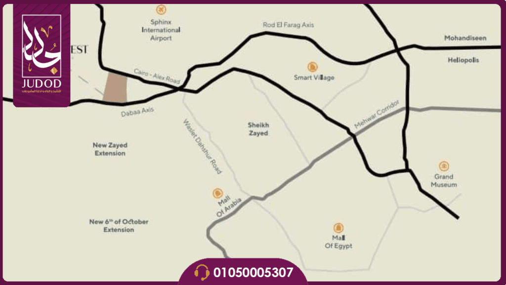- ويقع أيضاً بالقرب من كمبوند جاذبية 6 أكتوبر.