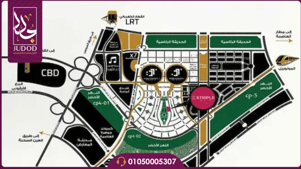 تم إنشاء “مول ستريبل ووك” في العاصمة الإدارية في قلب منطقة الداون تاون. يتميز هذا الموقع بكونه حيويًا ومركزيًا، ويقع بالقرب من المناطق الحيوية والشوارع الرئيسية.