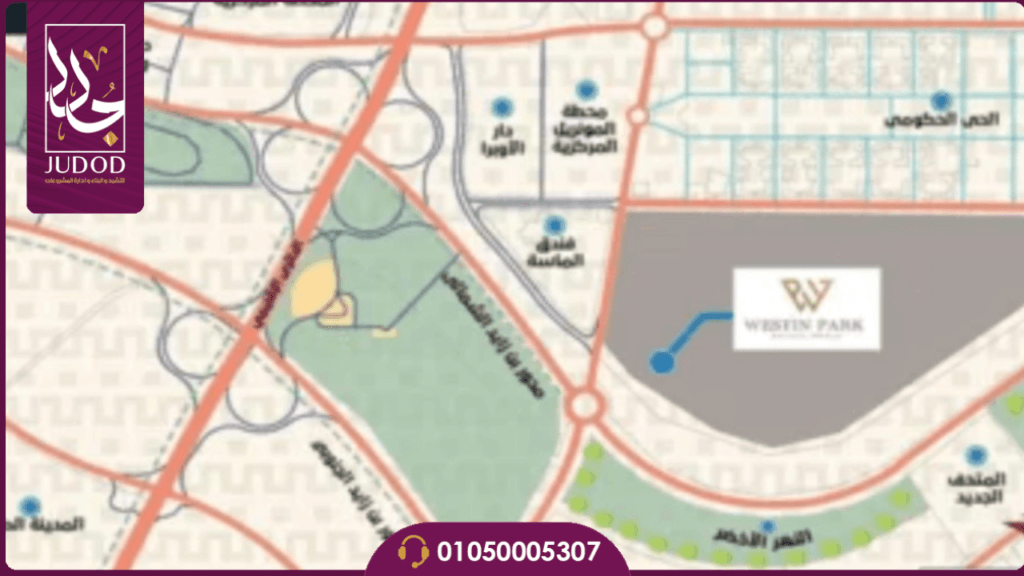 - يمكن الوصول إلى حديقة ويستن في العاصمة الجديدة عن طريق فندق الماسة.
